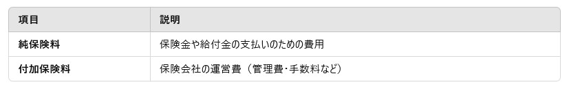 生命保険の保険料は、純保険料と付加保険料の2つの部分に分けられます。それぞれの意味は以下のとおりです。